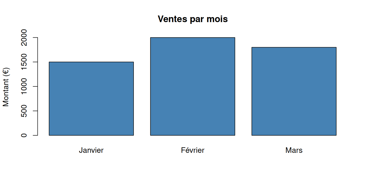 Janvier : 1500€, Février : 2000€, Mars : 1800€